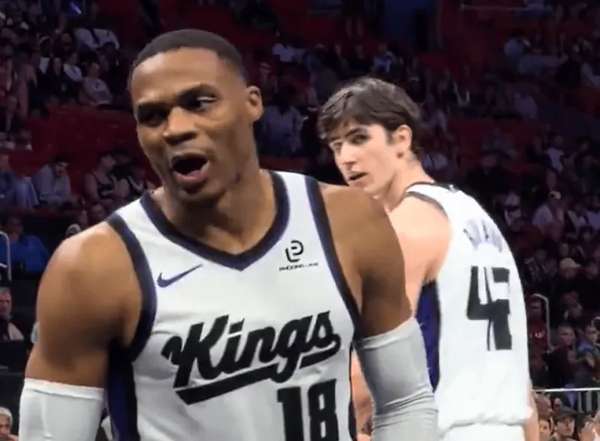 12月8日讯 在国王127-111客场击败热火的比赛中,场边发生颇具火药味的一幕。据美媒Fullcourtpass发布的现场视频显示,当威斯布鲁克执行边线发球时,热火球迷高喊带有贬义的外号"威铁(Westbrick)",立即引发这位前MVP的强烈反应。